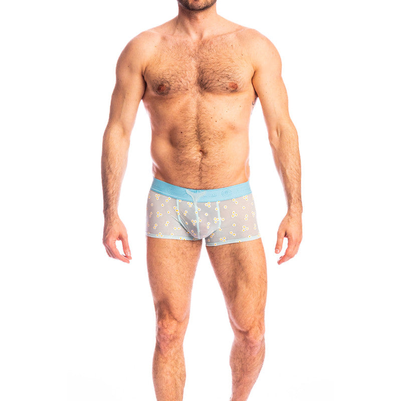 Genuine luxury men's boxer shorts with an original style in tulle embroidered with a thousand and one flowers, an ode to masculine sensuality, ergonomic, sexy and comfortable cut! With the V boxer push-up Fleurs de Peau, tattoo a chic and dressy pattern on your skin. Made from a fine, delicate and transparent material, you will be won over by these mysterious and romantic polychrome flowers on a flesh-colored background.